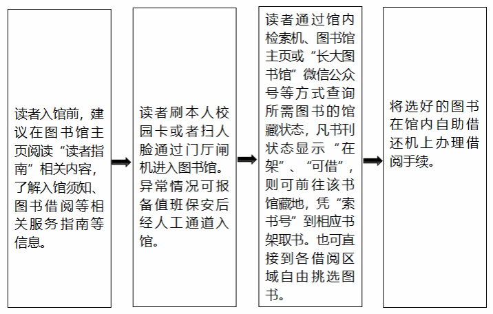 1. 自助借还:读者凭本人校园卡在馆内自助借还机上办理借还手续,现有自助借还机4台,分列于二、四、五楼;(温馨提示:还书时无须校园卡)