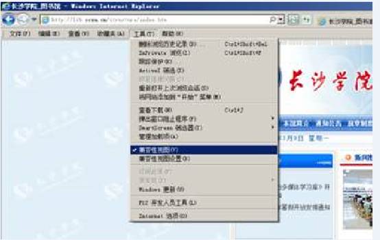 2) 在“工具”菜单中点选“兼容性视图”即可