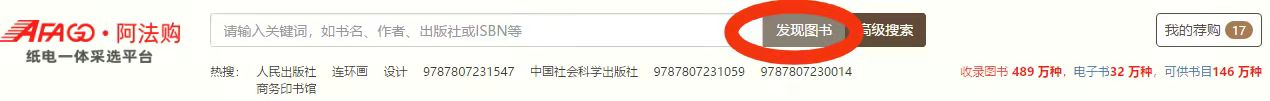 点击首页【发现图书】可通过输入关键词直接进入选购界面。