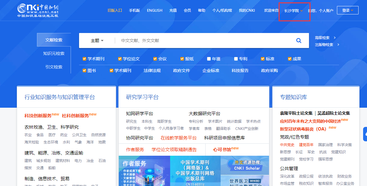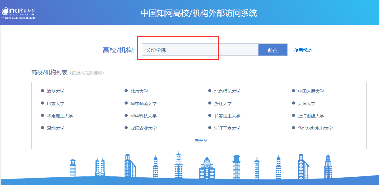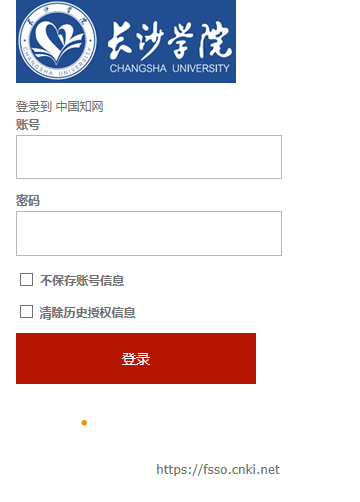 1、校外登录网址:https://fsso.cnki.net/ 输入机构名“长沙学院”。