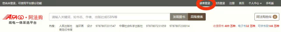 点击首页【发现图书】可通过输入关键词直接进入选购界面。