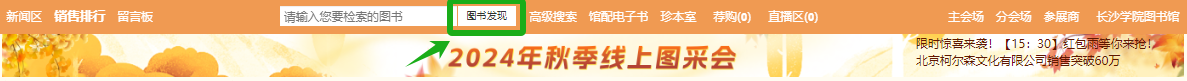 1.检索图书:点击首页的【图书发现】可直接进入选购界面。可按图书的出版时间、定价排序。也可按价格区间、出版时间段、重点图书【即关注的重点出版社】进行筛选。