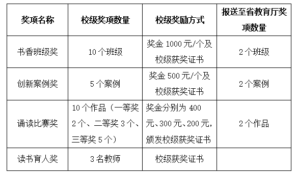 根据《关于印发〈长沙学院 2024年“一校一书” 阅读推广活动实施方案〉的通知》(长大发〔2024〕13号),我校2024年“一校一书”阅读推广活动设书香班级奖、创新案例奖、读书育人奖、诵读比赛奖共四个奖项。现将评奖有关细则通知如下: