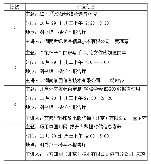 为充分利用图书馆自购数字资源,提升学生信息素养。图书馆将于10-11月举办“AI时代资源精准查询与获取”、“笔杆子”的好帮手,写论文你该知道的事”等数字资源专题培训讲座,有兴趣的读者可通过“PU口袋校园”报名,现场设小礼品互动环节,届时欢迎大家参加!