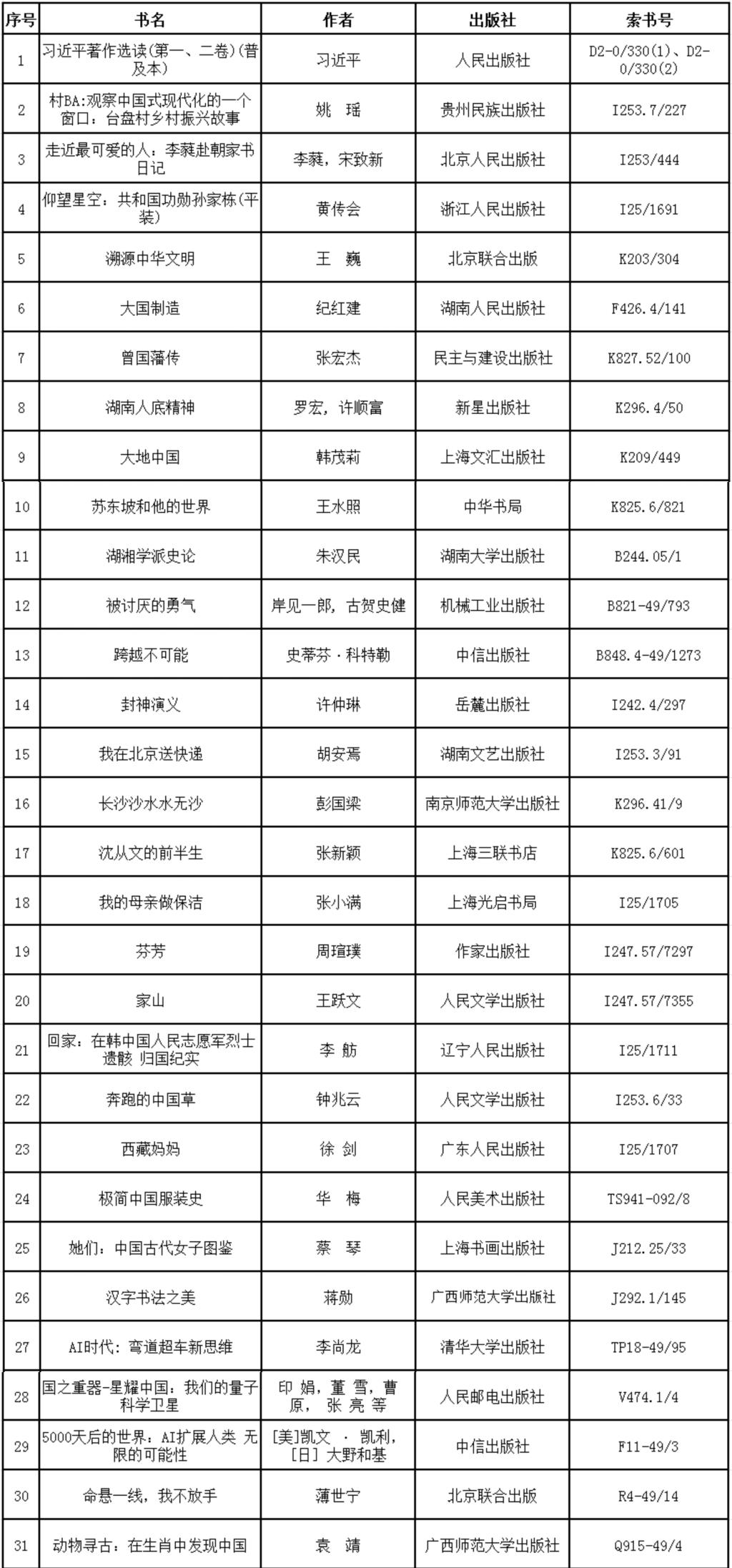 亲爱的读者朋友们,长沙学院2025年阅读推广指导书目新鲜出炉啦!我们结合了各大权威好书榜单、图书馆现有馆藏资源,精心挑选出涵盖人文社科、文学艺术、科普生活等门类的优质书籍,只为给你带来一份兼具深度与广度的阅读指南。无论你是文学爱好者、科技探索者,还是历史哲学迷,这里总有一本书能触动你的心弦。让我们一起翻开书页,开启一段全新的阅读之旅吧!