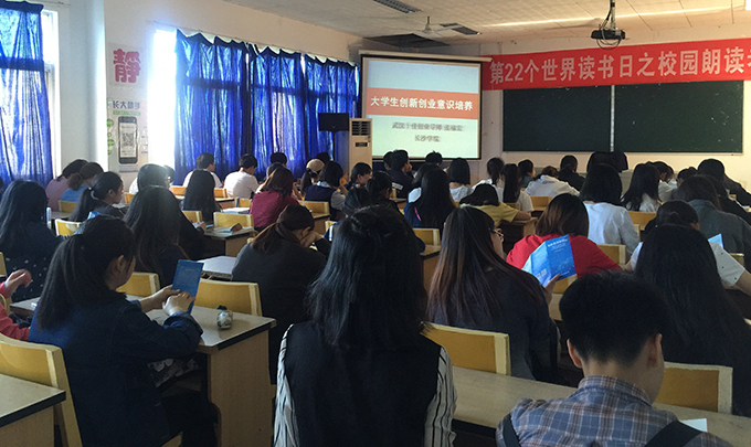 4月24日下午16:00,图书馆在512教室举行《如何开拓思维创新创业》专题数据资源讲座,100多名学生到场认真听取讲座,图书馆老师和部分系部老师也莅临现场。