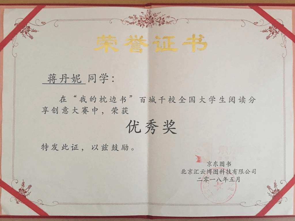 近期,由京东图书文娱数字阅读部和北京汇云博图科技有限公司主办的“我的枕边书”百城千校大学生阅读分享创意大赛圆满结束,我校经济与管理学院蒋丹妮同学荣获大赛优秀奖,生物与环境工程学院程聪益同学、计算机工程与应用数学学院潘旭斌同学荣获纪念奖。