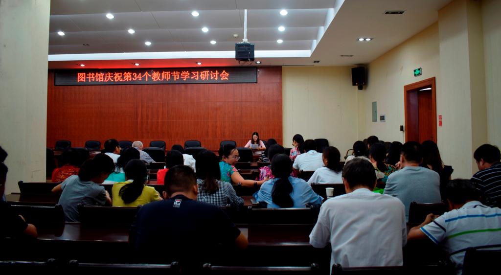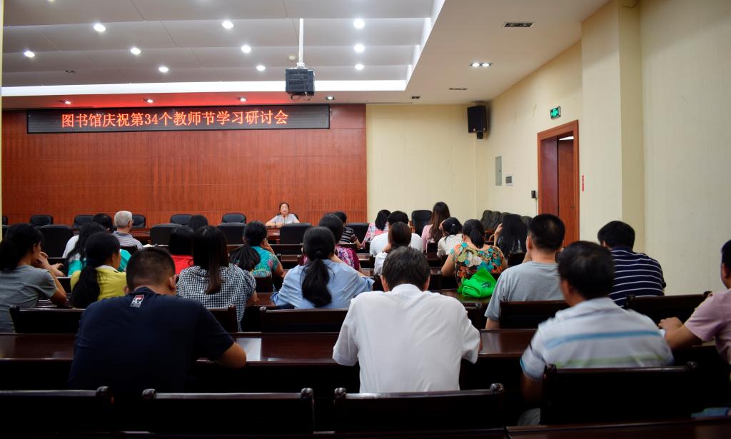 在第34个教师节到来之际,根据省教育厅及学校通知精神,9月7日下午,图书馆结合工作实际,组织全体馆员开展了以“弘扬高尚师德,潜心立德树人”为主题的系列学习教育活动,在馆内营造了“不忘初心、牢记使命”的良好氛围,活动由喻秋兰馆长主持。