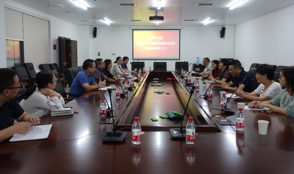 9月15日上午,湖南师范大学图书馆党总支书记罗晓慧、副馆长胡开胜等一行六人到我馆考察调研。我馆全体班子成员,以及图书馆各部门负责人在一楼会议室与来访人员进行了座谈交流。