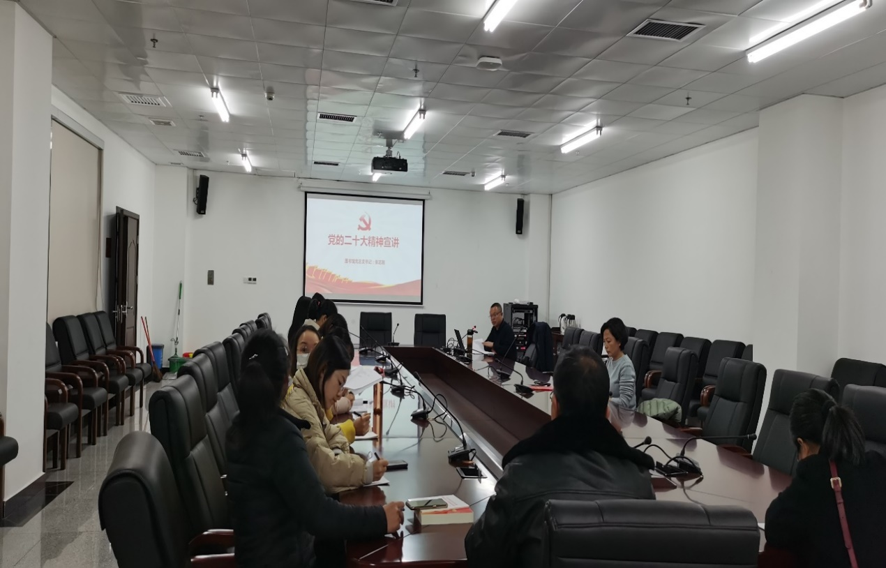 为深入学习党的二十大精神, 2022年11月29日,图书馆党总支书记张志刚分别以“党的二十大精神宣讲”、“解读《十九届中央纪律检查委员会向中国共产党第二十次全国代表大会的工作报告》”为主题,为全体党员讲授了两场专题党课,图书馆全体党员参与学习。