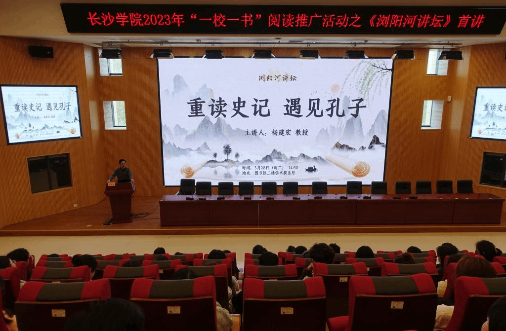 “杨老师深入浅出的讲解带领我们重读《史记》中的孔子形象,仿佛让我们也能与司马迁、孔子神交,受益匪浅。作为新时代青年,我常常想回到过去与这些伟人进行思想交流碰撞,所以我能做的就是多读书、多思考。”马栏山新媒体学院2019级学生黄大桂说道。图书馆馆长王永启表示,“《浏阳河》是湖南有名的民歌,浏阳河也是哺育长沙人民的母亲河,更是谭嗣同、徐特立、欧阳予倩等文人荟萃的地方。一条名河、一首民歌、一群文人赋予了浏阳河丰富的文化内涵。我们长沙学院就坐落在浏阳河畔,深受浏阳河水的哺育和浏阳河文化的滋养浸润,我们举办《浏阳河讲坛》,就是希望学生秉承先辈勤学深思的优良传统,多读书善读书读好书,通过读书陶冶情操、增强本领、赢得未来。”