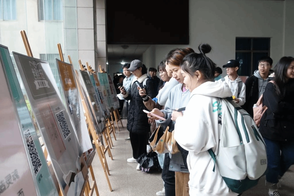 法国著名作家雨果说:书籍是改造灵魂的工具,人类所需要的是富有启发性的养料。而阅读,则正是这种养料。4月,图书馆在涵虚楼和图书馆一楼中庭整齐有序摆放了23块展板,向全校师生读者推荐23本畅销图书,涵盖文学、史学、哲学、科技和散文等,如《乡土中国》《读书与人生》《史记》《哲学简史》……学生纷纷前来参观,20汉语1班戴嘉言表示“这些图书思想丰富、内涵深邃,都是值得一读的好书,而且我们“扫码”就能随时随地阅读电子书,非常便捷,便于开展碎片阅读。”