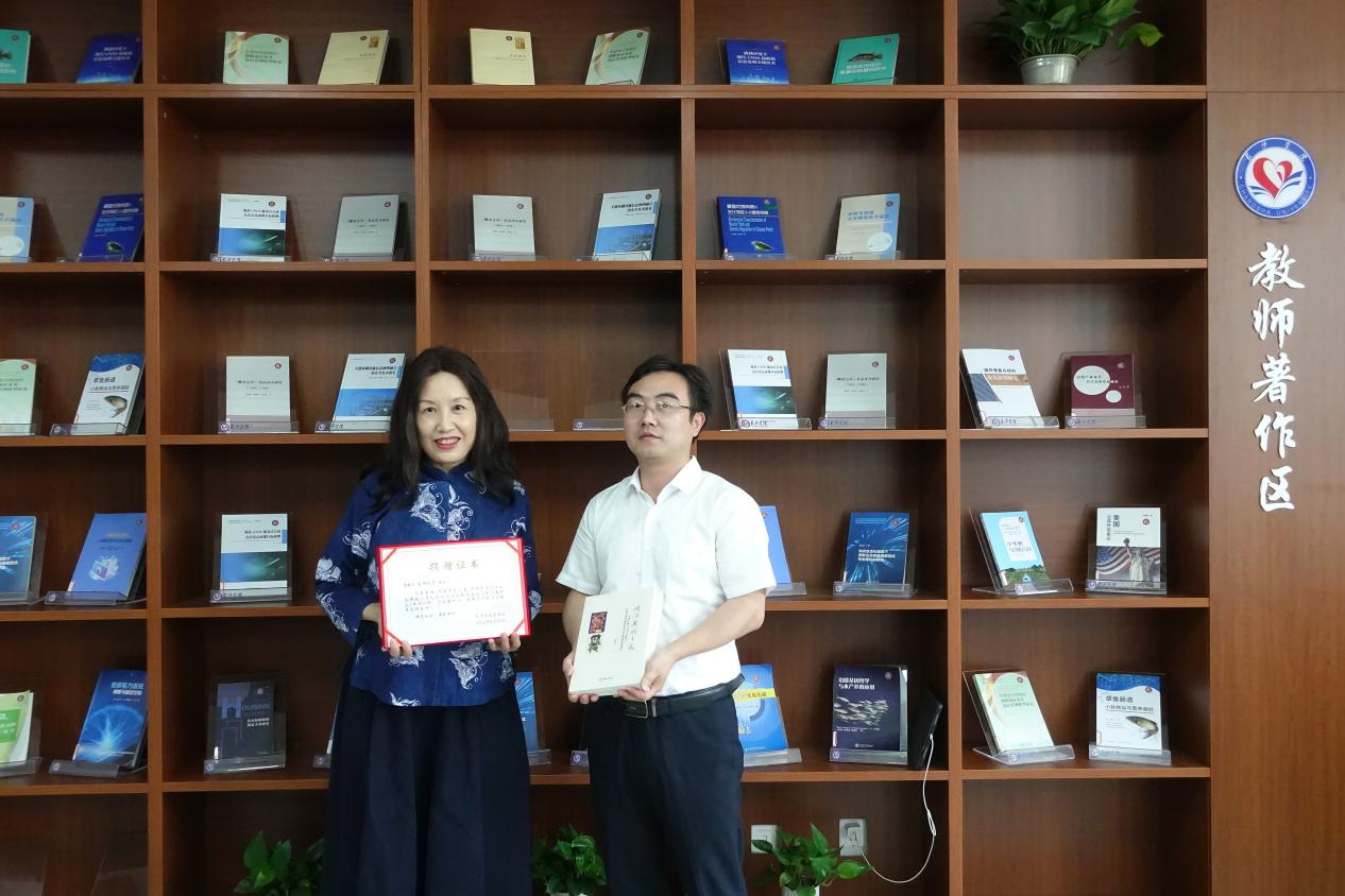 接着,欧阳秋子教授向图书馆捐赠她的专著《同源异彩之美——中国年画与日本大津绘之传统文化内涵比较及文化创新对策研究》,图书馆王永启馆长接受新书捐赠,向欧阳秋子教授颁发捐赠证书,并将新书摆放在教师著作区进行展示。王永启馆长指出,欧阳教授此次的新书捐赠进一步丰富了图书馆教师著作区的馆藏,也进一步增加了教师著作区的人文和艺术气息,为师生读者学习中国年画和日本大津绘提供宝贵借鉴。