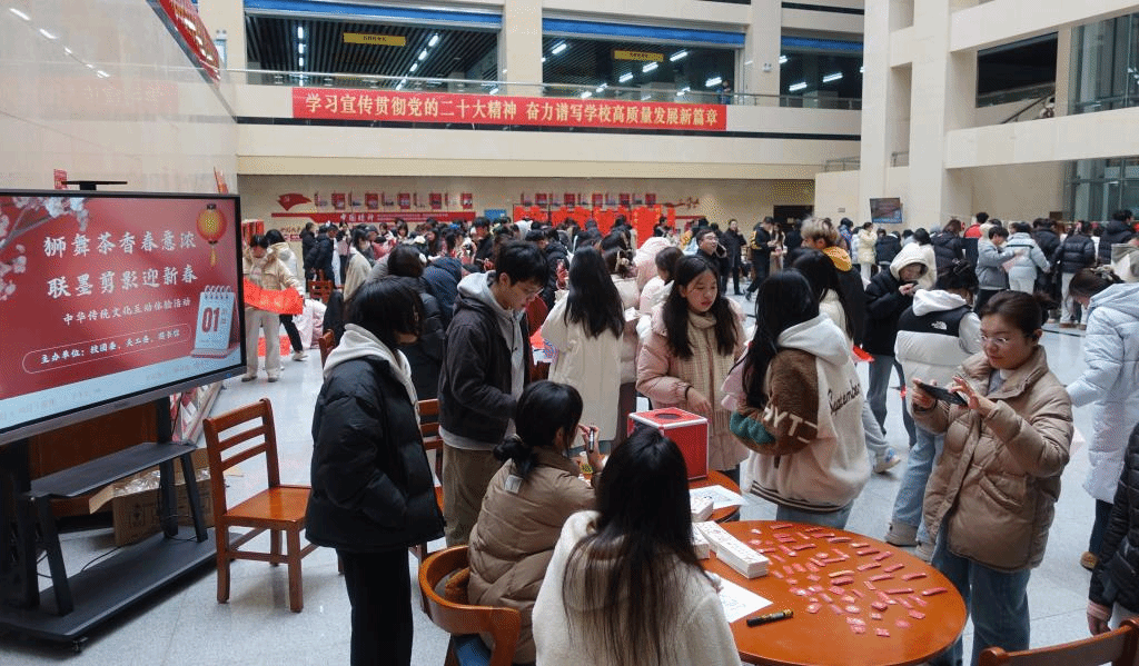 12月24日,长沙学院图书馆内热闹非凡,一场名为“狮舞茶香春意浓,联墨剪影迎新春”的传统文化互动体验活动在此盛大举行。师生读者齐聚一堂,共同沉浸在中华传统文化的浓郁氛围中,为即将到来的新年增添了一份别样的喜庆与欢乐。