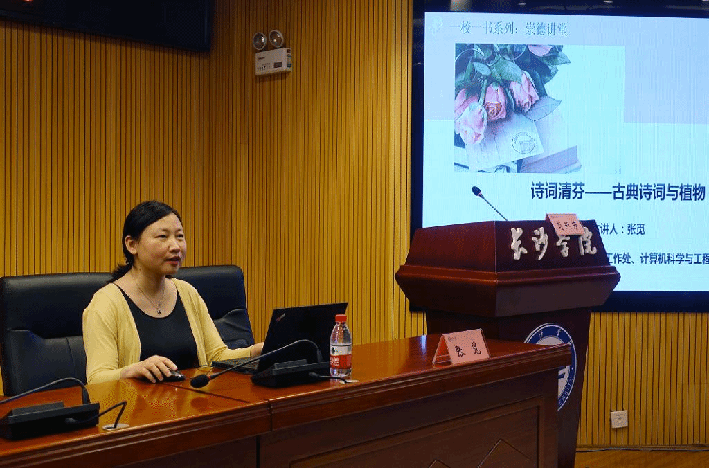 4月10日,长沙学院图书馆一楼报告厅迎来了一场别开生面的文化盛宴——崇德讲堂之《诗词清芬——古典诗词与植物》讲座。本次讲座由长沙学院图书馆、学生工作处、计算机科学与工程学院联合主办,由张觅博士主讲,带领现场师生一同探寻古典诗词中植物的审美意蕴与文化内涵,感受古人笔下的草木情怀。