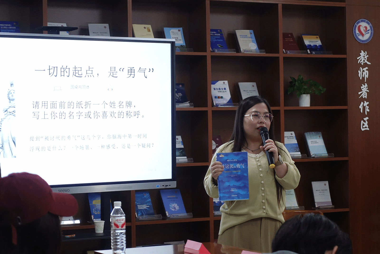 活动伊始,樊晶老师以“平等、开放、对话”为基调,邀请参与者折制姓名牌,迅速构建起一个温暖的“圆桌共同体”。在“勇气的初想象”环节,樊老师率先分享了自己的真实感受,迅速拉近了与学生的距离。在她的真诚带动下,同学们纷纷敞开心扉,分享了各自对“被讨厌的勇气”的第一印象——从“害怕被否定”到“渴望表达真实自我”。现场不再是传统的讲授课堂,而是一个师生平等对话、思想自由流动的空间。