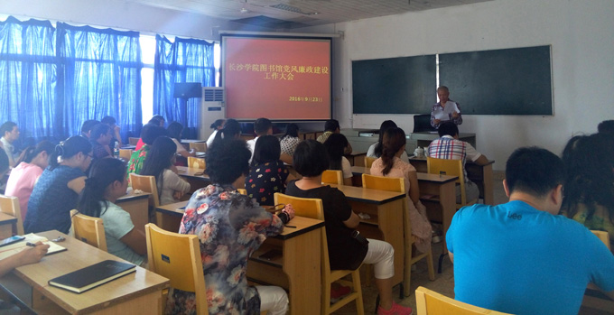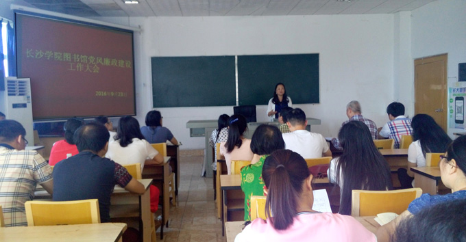 2016年9月23日上午,图书馆在512会议室召集全馆馆员召开党风廉政工作大会。首先,图书馆直属党支部纪检委员邓谷泉副馆长传达了近期学校党风廉政建设工作相关会议的重要精神,对图书馆2016上半年党风廉政建设责任制履行情况进行了全馆通报,并重点宣读了省教育纪工委《关于13起“发生在群众身边的不正之风与腐败问题”典型案件通报》和《关于全省高校查处的8起“纠‘四风’、治陋习”典型案件的通报》全文。