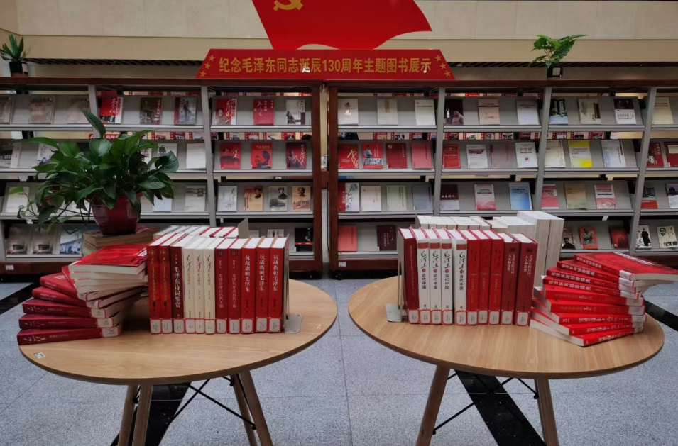 为纪念毛泽东同志诞辰130周年,本月在图书馆一楼中厅集中展示馆藏的毛泽东同志相关主题图书,供全校师生读者阅读。