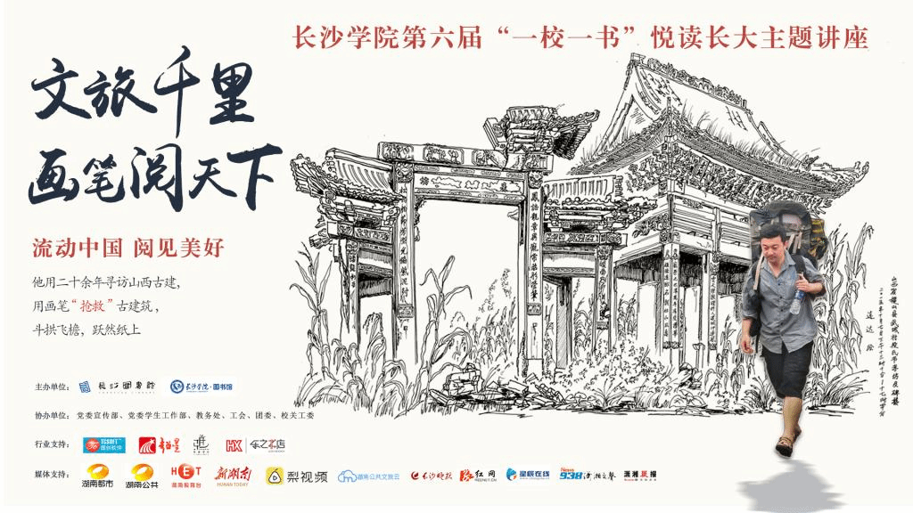 10月26日(周一)下午4:00-5:30,我馆将联合长沙图书馆,邀请知名古建筑画家、人文作家连达先生做客长沙学院,在新图书馆二楼报告厅为读者们带来“一校一书”悦读长大主题讲座——《文旅千里,画笔阅天下》。