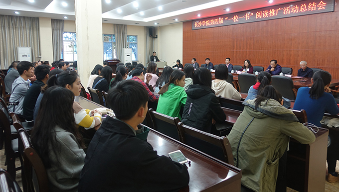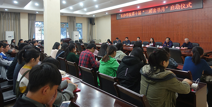 11月2日,我校第四届“一校一书”活动总结会暨第十届“三湘读书月”启动仪式在图书馆会议室举行,副校长王永宏出席活动,宣传部、学工部、工会、团委、图书馆等部门相关负责人、学生代表等近百人参加活动。活动由图书馆副馆长邓谷泉主持。