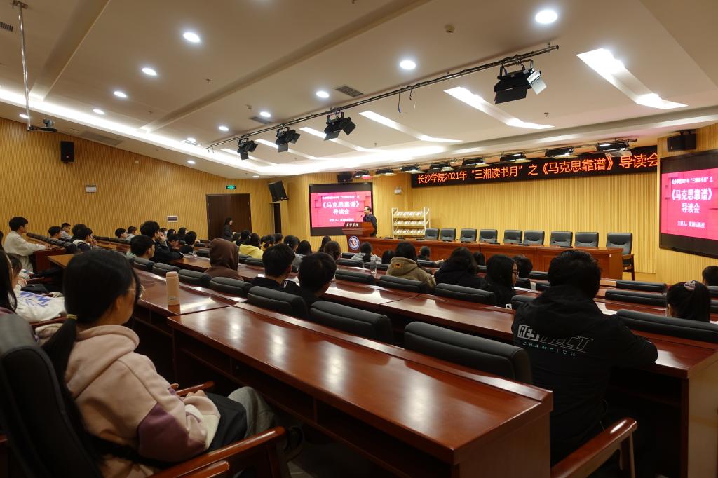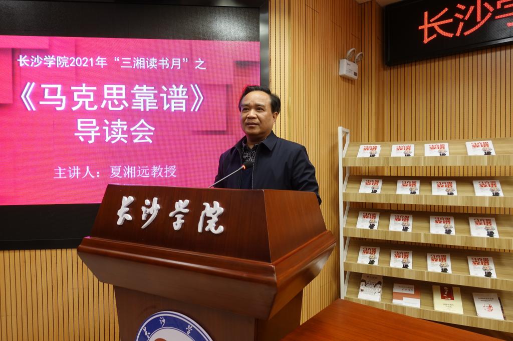 11月30日下午,“三湘读书月”之《马克思靠谱》导读会在图书馆一楼报告厅顺利举行。我校法学院夏湘远教授受邀主讲,近百名师生读者到场聆听,讲座由图书馆副馆长符勤主持。