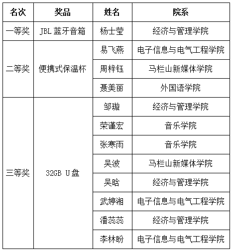 请各位获奖的读者携带本人校园卡前往图书馆二楼总服务台领取奖品。