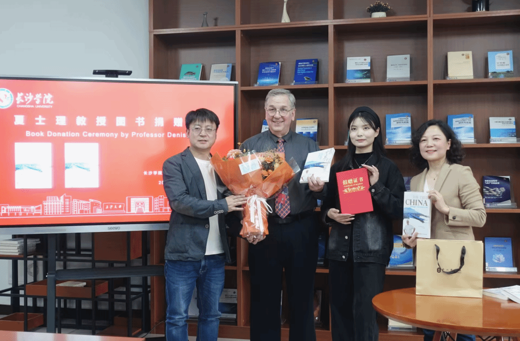 4月17日下午2点,一场温馨而充满文化气息的图书捐赠活动在长沙学院图书馆3014特藏书库举行。作者Denis·Nurmela(丹尼斯·努尔梅拉)与合著者王琴(YoYo)共同向图书馆捐赠了两人撰写的中、英文版回忆录《情系华夏:美国教授的中国心》和《The True China: Through a Foreigner's Lens》。