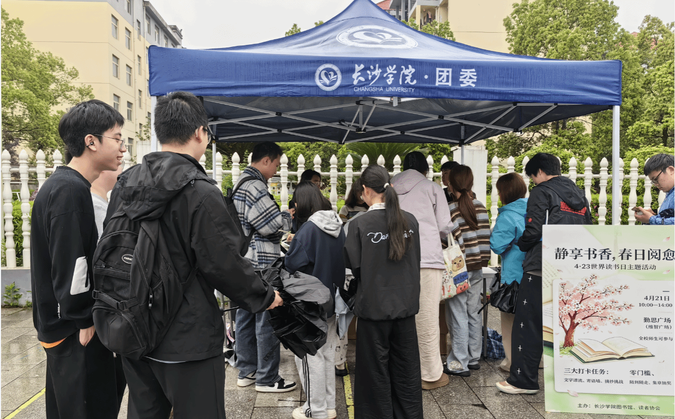 4月21日,长沙学院勤思广场迎来了一场安静而特别的读书日聚会:“静享书香,春日阅愈”——4·23世界读书日主题活动在这里展开。没有喧闹的开场,也没有复杂的流程,全校师生随到随走,在春日文字漂流、书香寄语墙、春日摘抄挑战三项打卡任务中,集章抽奖,感受文字带来的治愈力量。