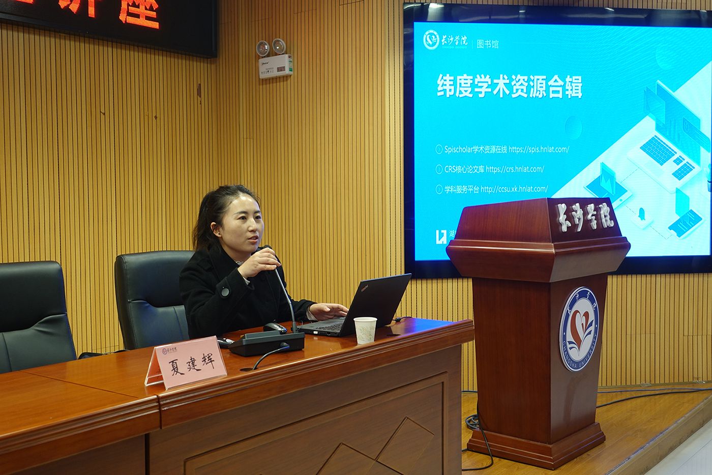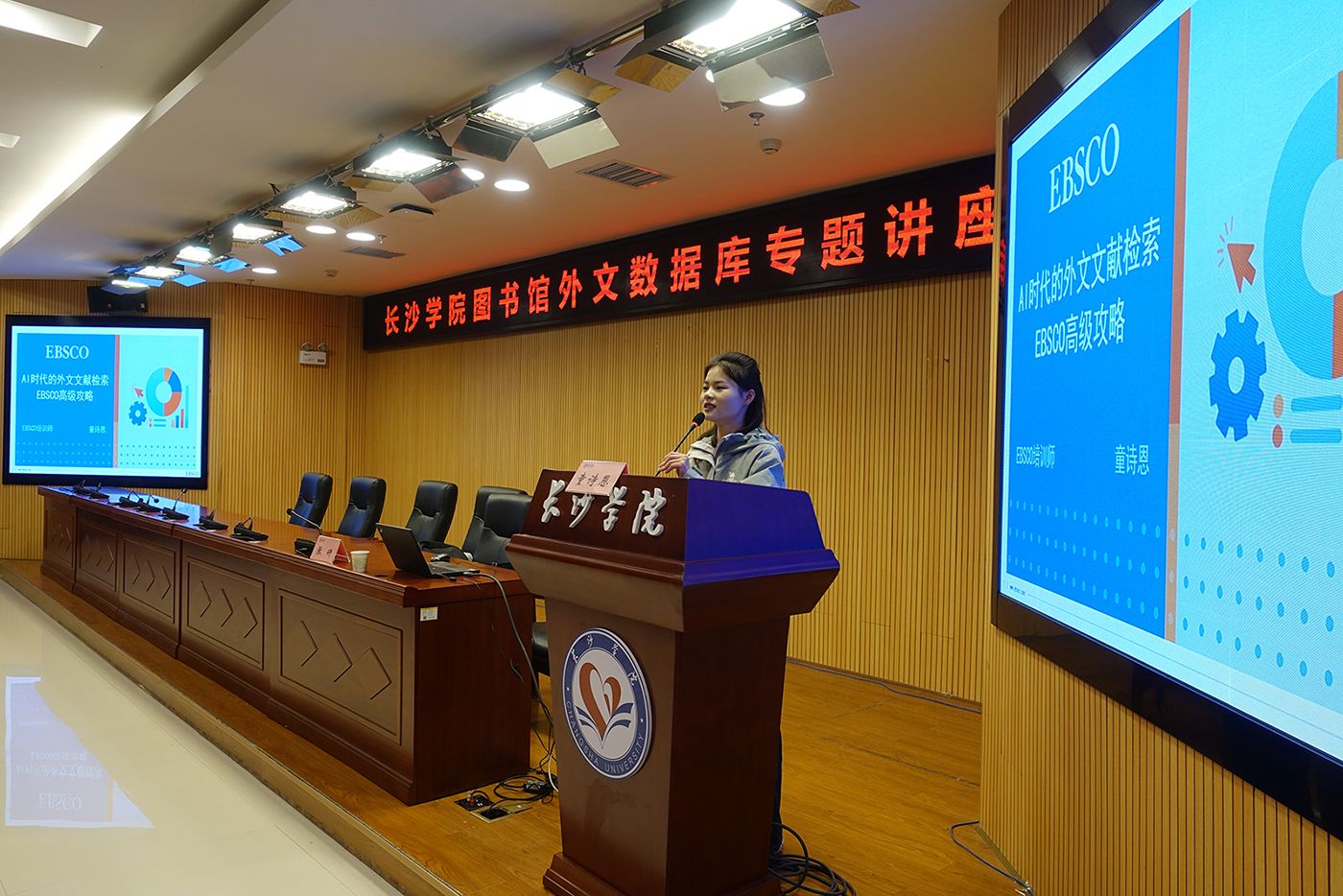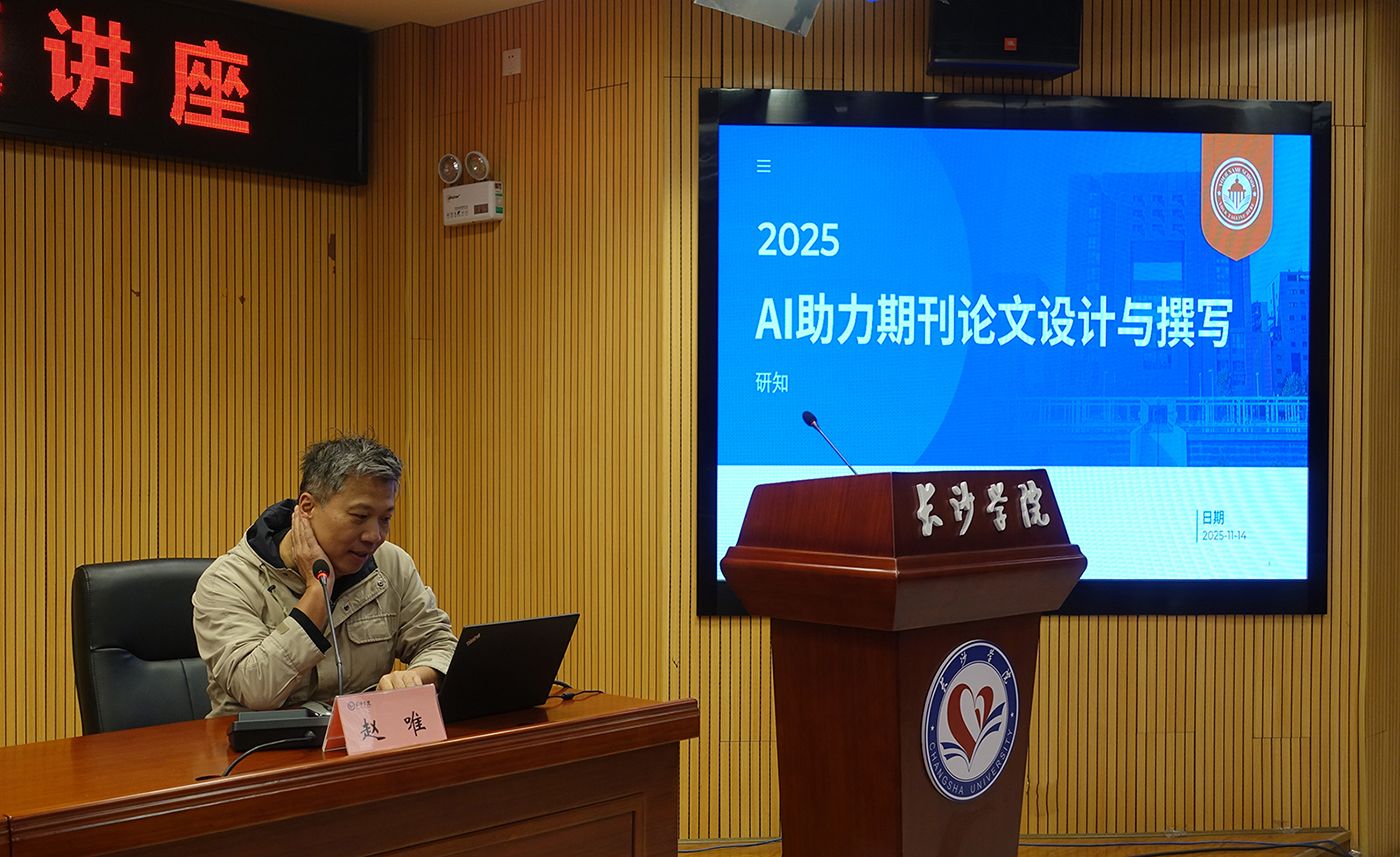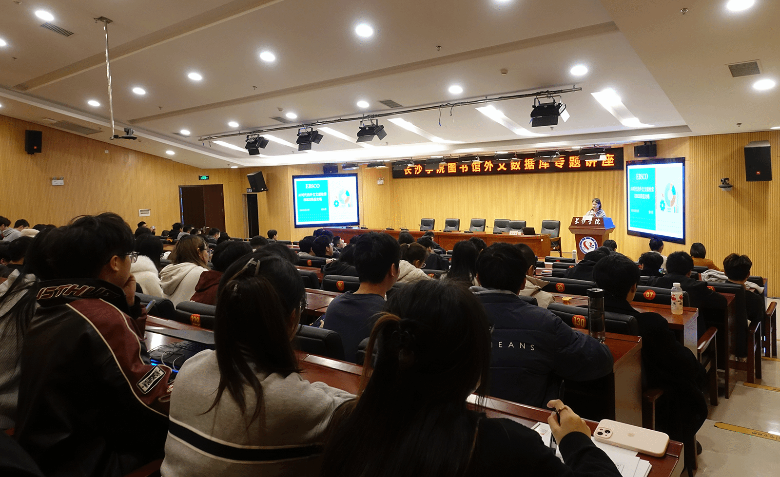 11月26日下午,长沙学院图书馆一楼报告厅座无虚席,一场以"智慧科研·高效检索·AI赋能"为主题的研究生外文数据库专题讲座在这里举行。