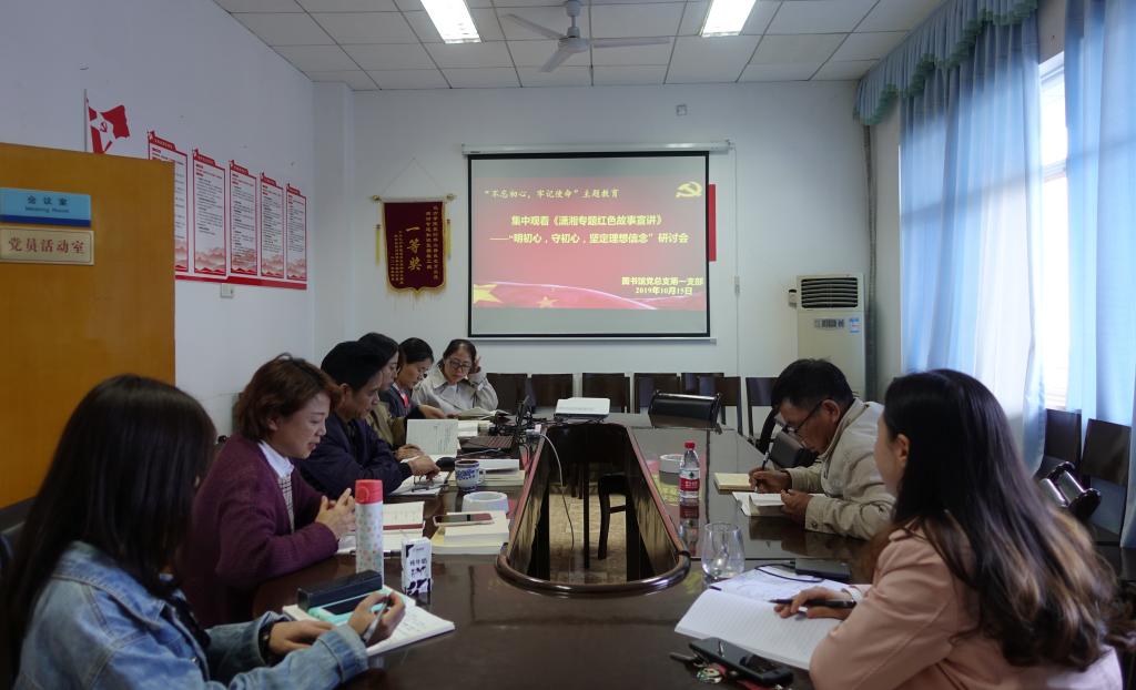上午,按照学校统一部署,图书馆党总支第一支部和第二支部分别在图书馆509室和512室集中观看了《潇湘红色故事专题宣讲》,宣讲分“初心不改”“鱼水情深”“使命担当”三个篇章,分别讲述了毛泽东、刘少奇、任弼时等老一辈无产阶级革命家以及陈树湘、陈能宽、王新法等不同时期优秀共产党员的感人事迹。大家纷纷表示,这些故事感人肺腑、令人振奋,他们的精神可歌可泣、值得传承。随后,党员们围绕主题教育第一个专题“明初心,守初心,坚定理想信念”展开了研讨交流。大家表示,通过个人自学和集中学习,通过读原著学原文悟原理,对习近平新时代中国特色社会主义思想有了更深入的理解,切实提高了指导实践、推动工作的能力,收获颇多。