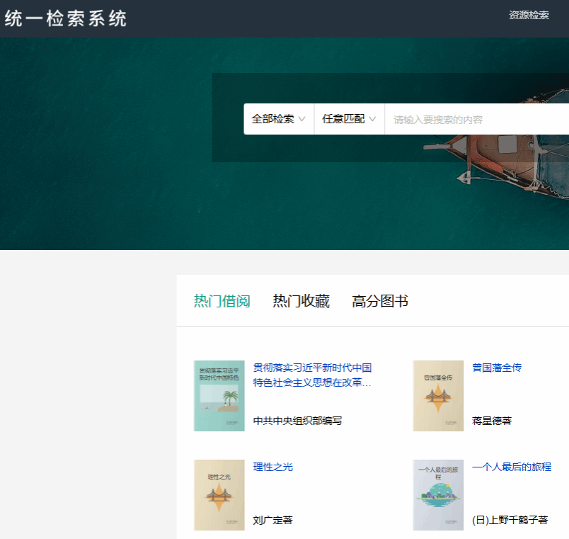 读者可以通过以下方式进入图书馆统一检索系统,根据题名、作者、出版社、ISBN号、任意词等选项,在检索框内输入相应关键字查询图书: